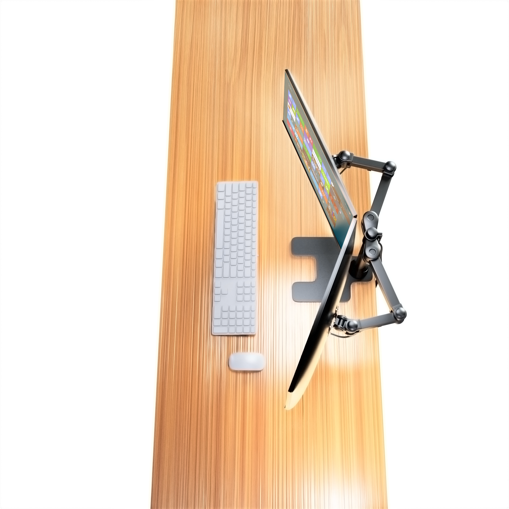 This wide dual monitor mount can be changed the height, angle, and depth. It's effortless rotation and positioning give you access to move it in any direction. This arm stand allows you to work in a healthy posture by setting the monitor at an optimal distance and height. The versatility of monitor placing allows for ergonomic positioning which encourages proper body setup and helps reduce strain on the neck, shoulders, and eyes.