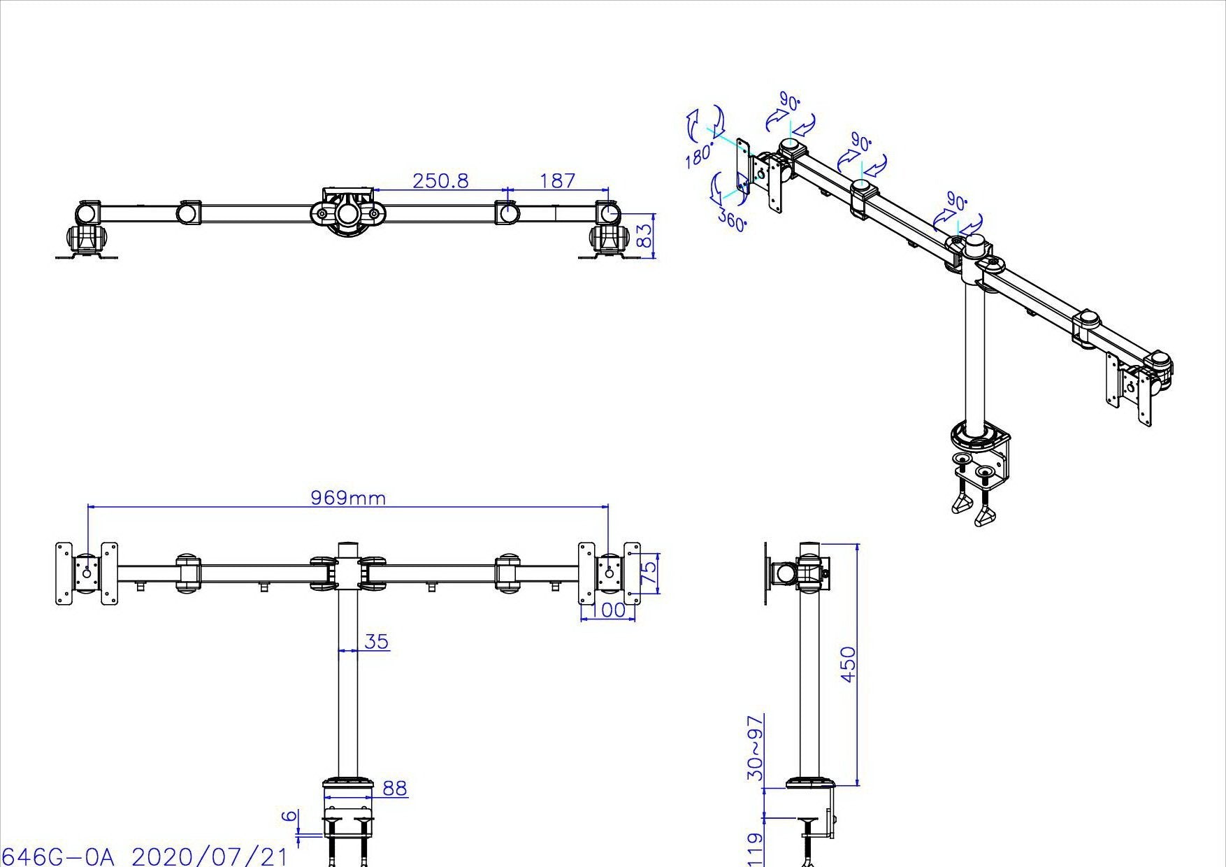 - FULLY ADJUSTABLE: Our monitor gives you a comfortable experience and viewing angles with ±90° tilt, ±45° swivel, and 360° rotation with height adjustment along the center pole for ergonomic screen positioning. Monitors can be placed in portrait or landscape orientation.