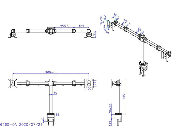 - WIDE ARMS: The wide arms give you more range of articulation, share your screens with your coworkers without any worry.