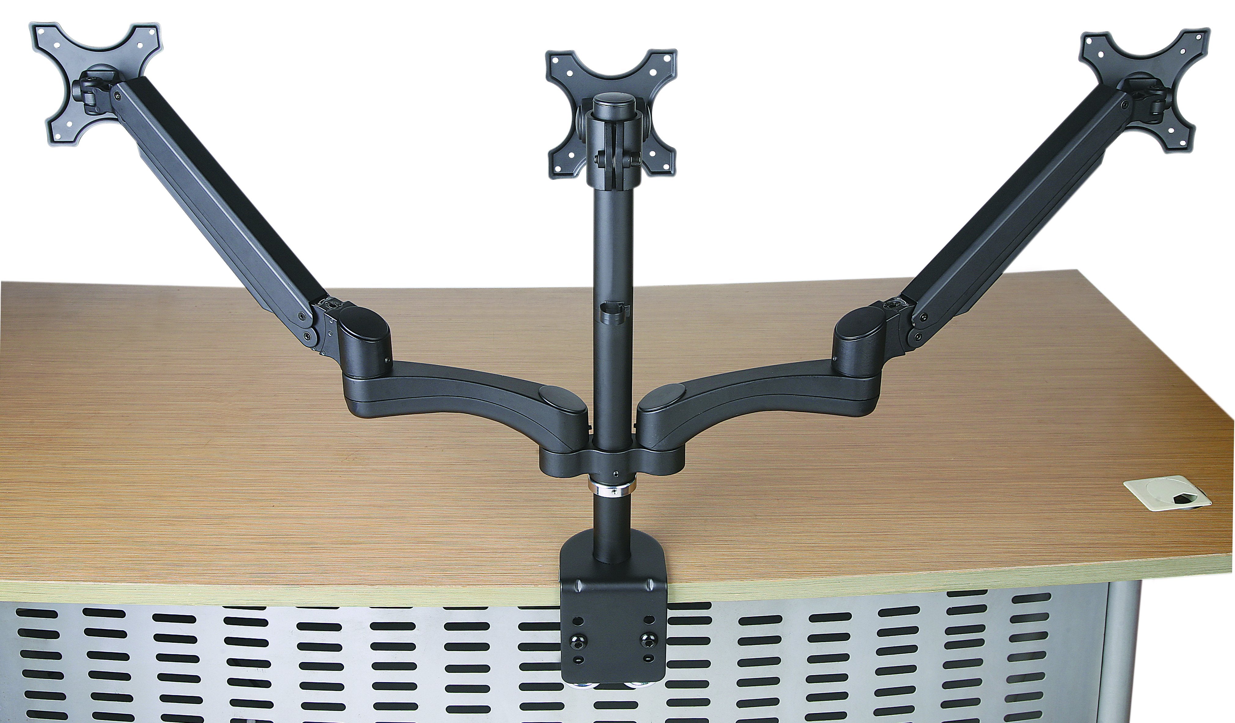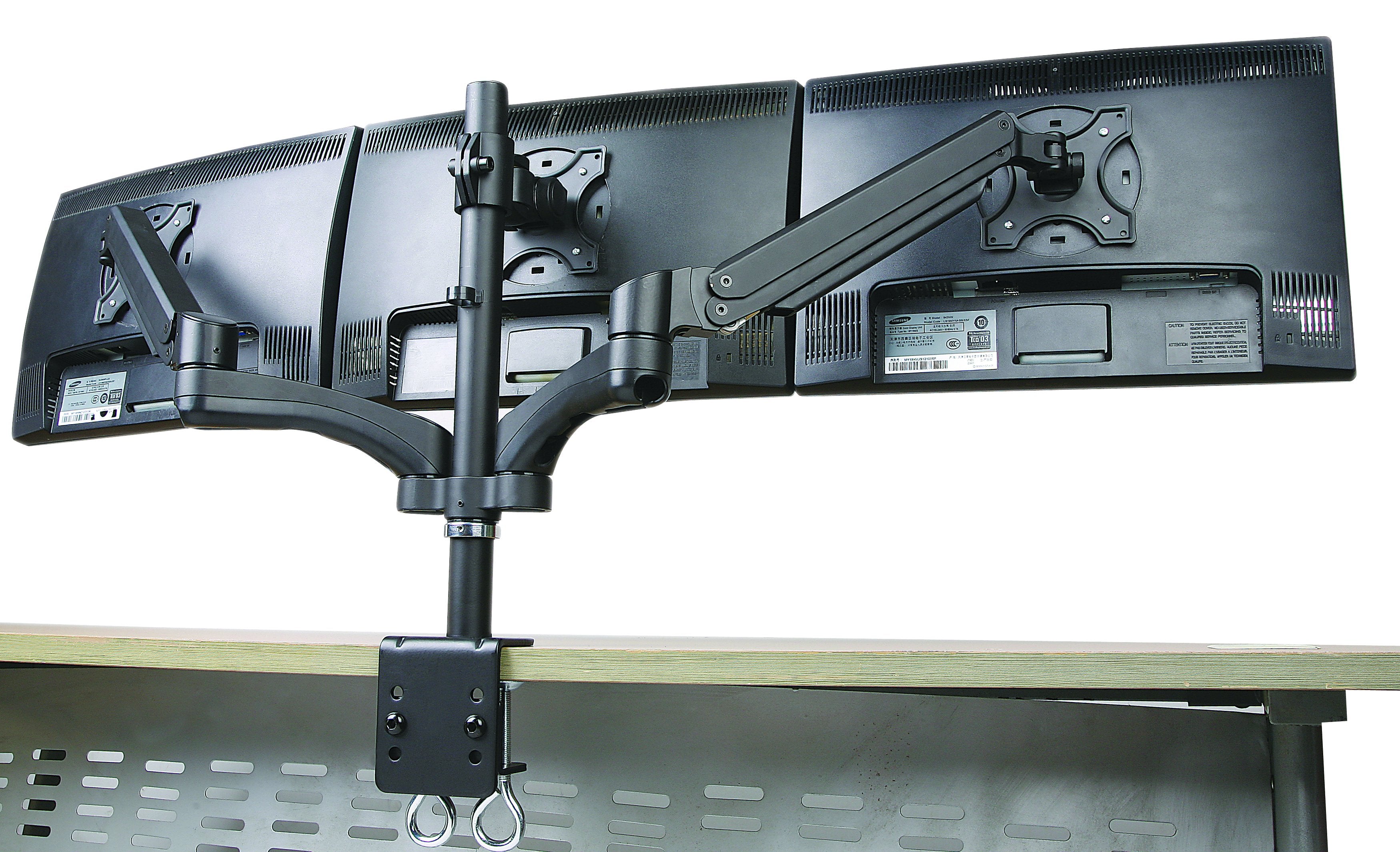 - UNIVERSAL TRIPLE MONITOR STAND fits 19, 20, 24, inch monitors with VESA patterns of 75x75 and 100 mm.10 KG capacity on each arm