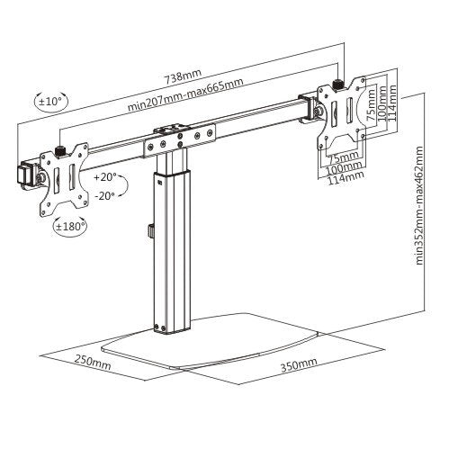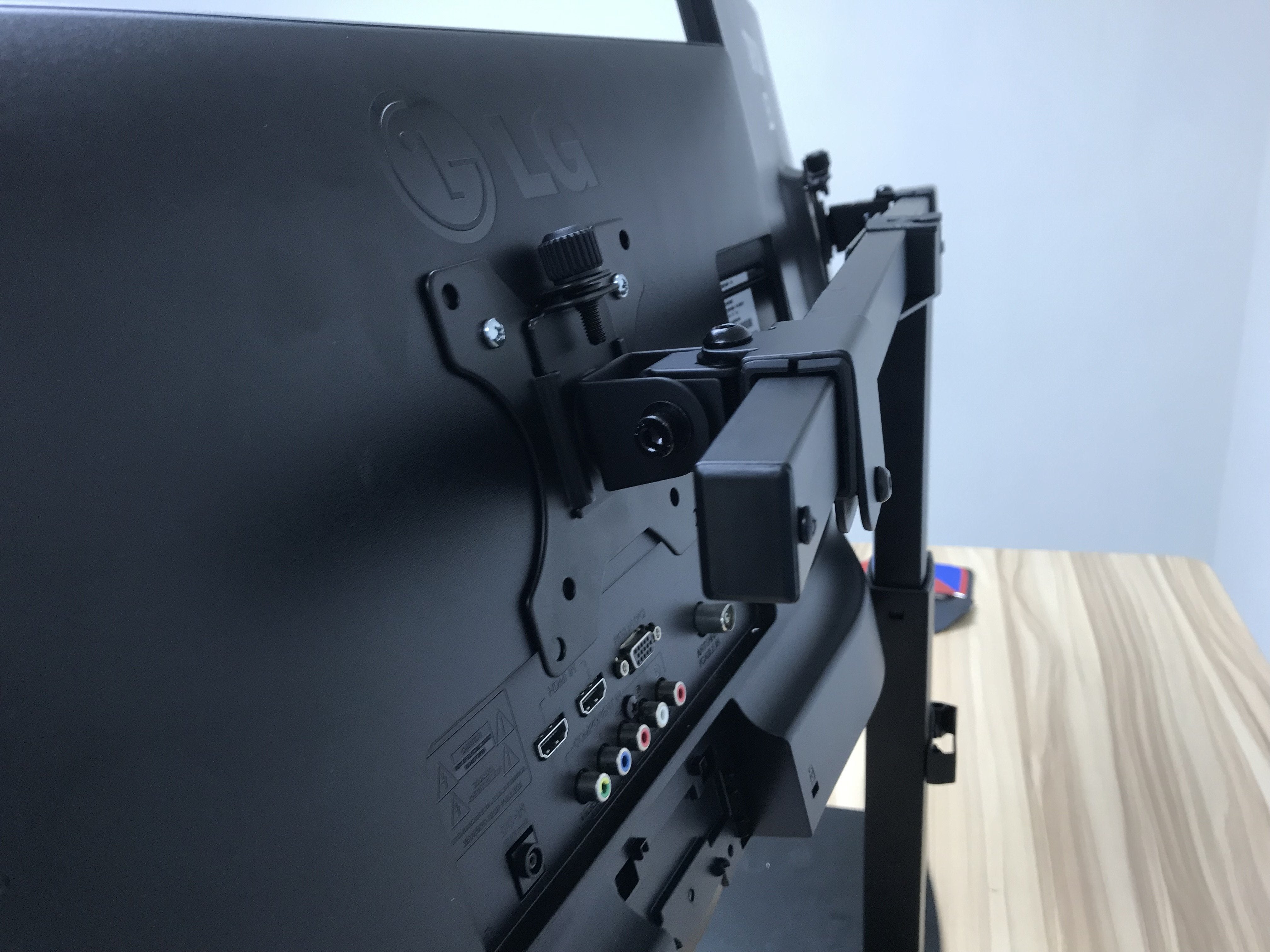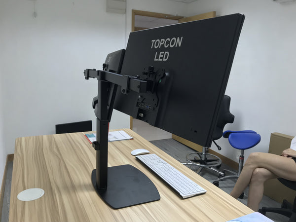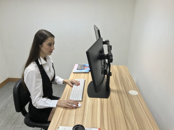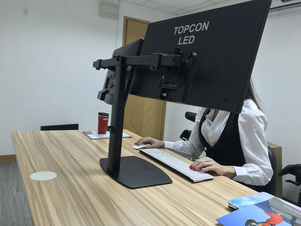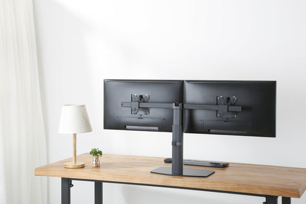 EFBGD comes packed with user geared features such as removable VESA mounting plates, monitor height adjustment, integrated cable management. It raises two 17"-27" monitors in a horizontal line to clear up your valuable work surface, at the same time allows for ergonomic viewing which encourages healthy body positioning. Besides, cable clip and tool holder which come handy to present clutter-free workspace.