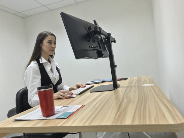 - FULLY ADJUSTABLE: Experience optimal viewing angles with -20° to +20° tilt, 90° swivel, and 360° rotation for finding the screen position that leaves you working in comfort all day long.