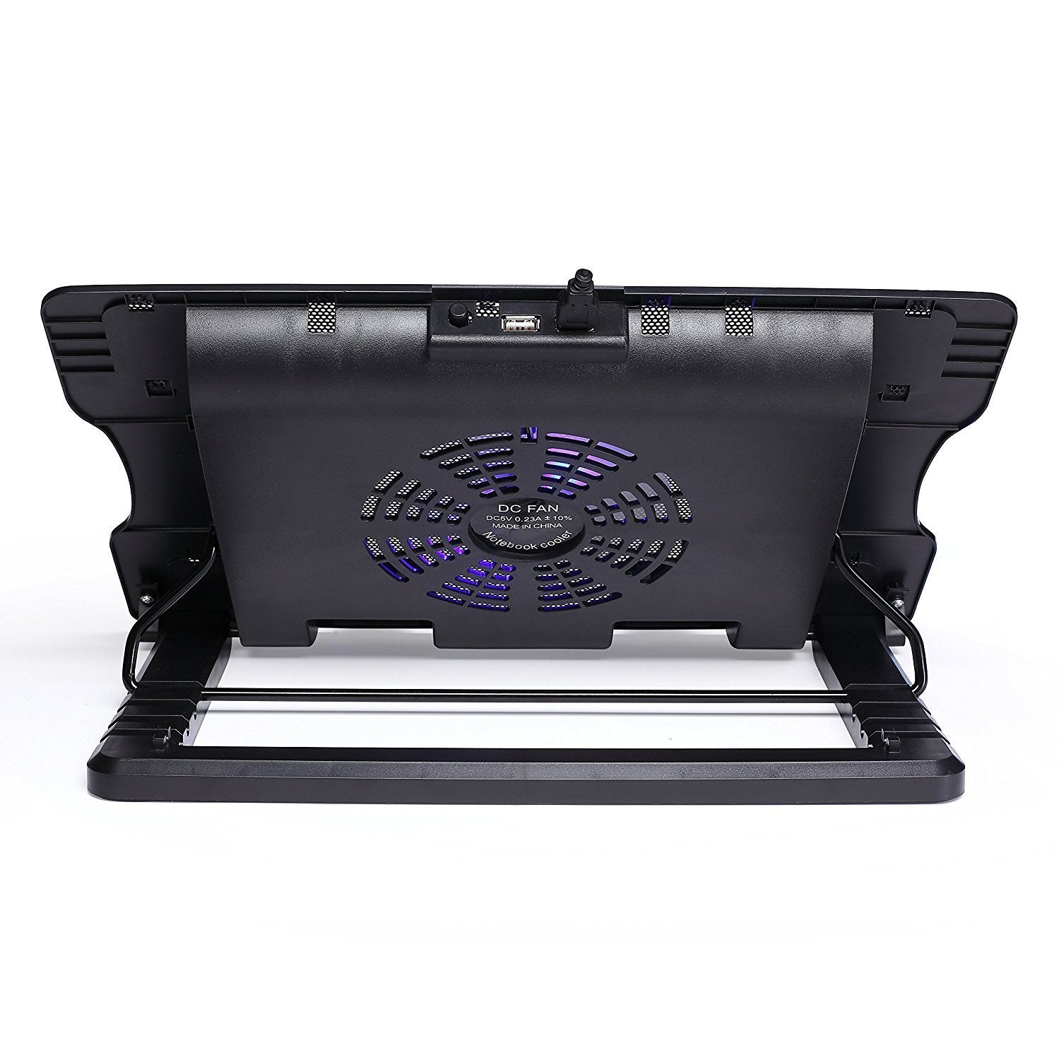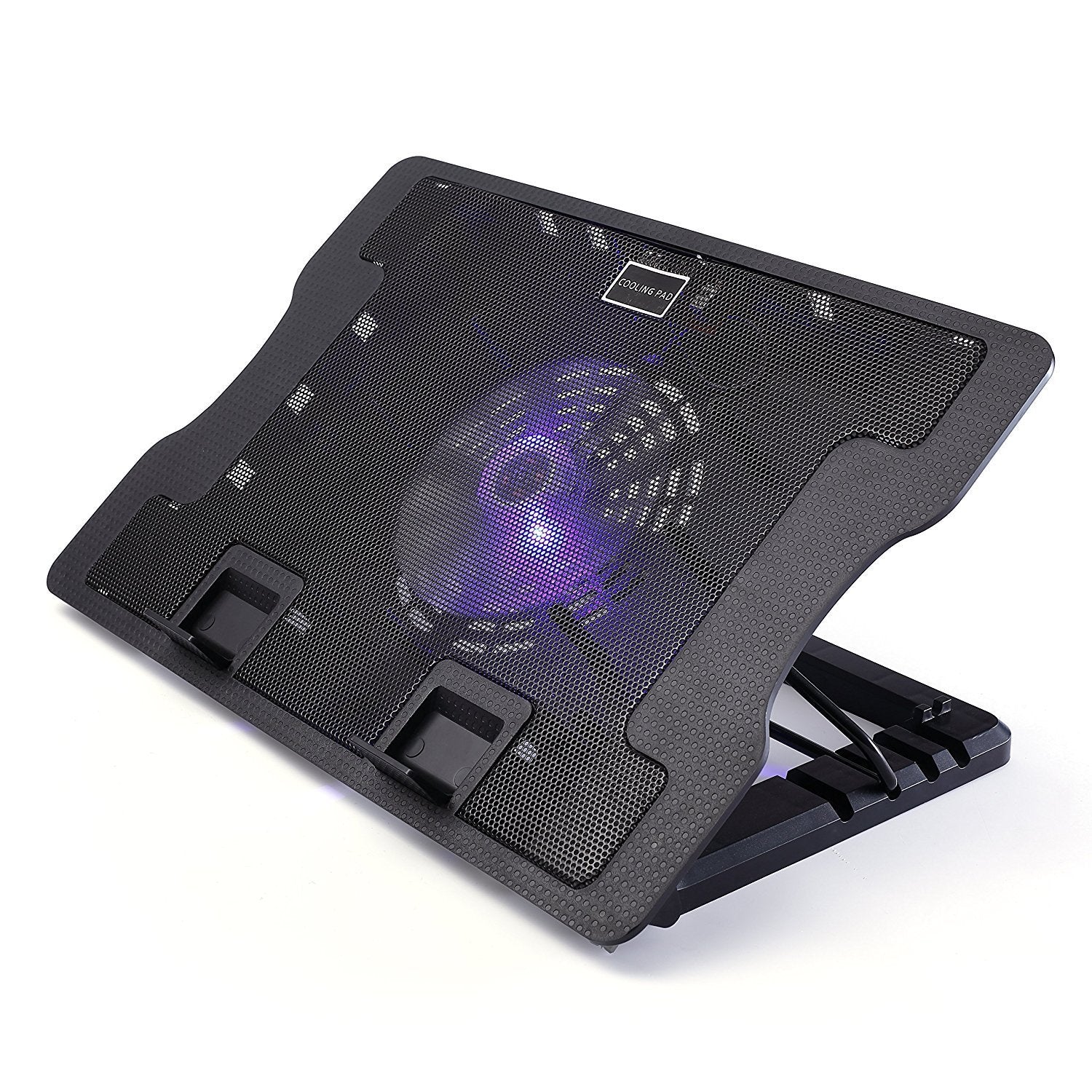 Laptop Cooling Pad for 12-17" Screens. Ergonomically design for a better viewing and typing angle, allowing you to work or play on your laptop for prolonged periods without straining your neck, back and wrist. Great at home or in the office. This Notebook adjustable stand is designed to keep your laptop temperatures low, even while using them at a high capacity. It uses cooling fan to constantly blast cold air to the bottom of the computer and dissipate the emitting heat. It can support laptops with a screen size between 12-17 inches, which is the range for the most standard sizes. This is foldable and slim and lightweight pad is made to be portable to use in at any location.