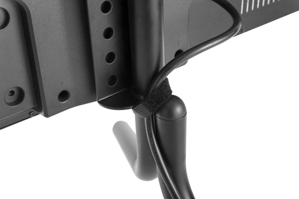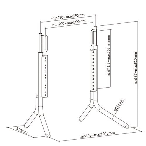 - SLEEK DESIGN: Space-saving design offers a stylish look to suit your living room, with a black finish. Each leg offers height adjustment for added flexibility. Solid Steel Y-Shape Construction: offers greater stability to prevent TV tip-over. elegantly hides any cables that are attached to displays.